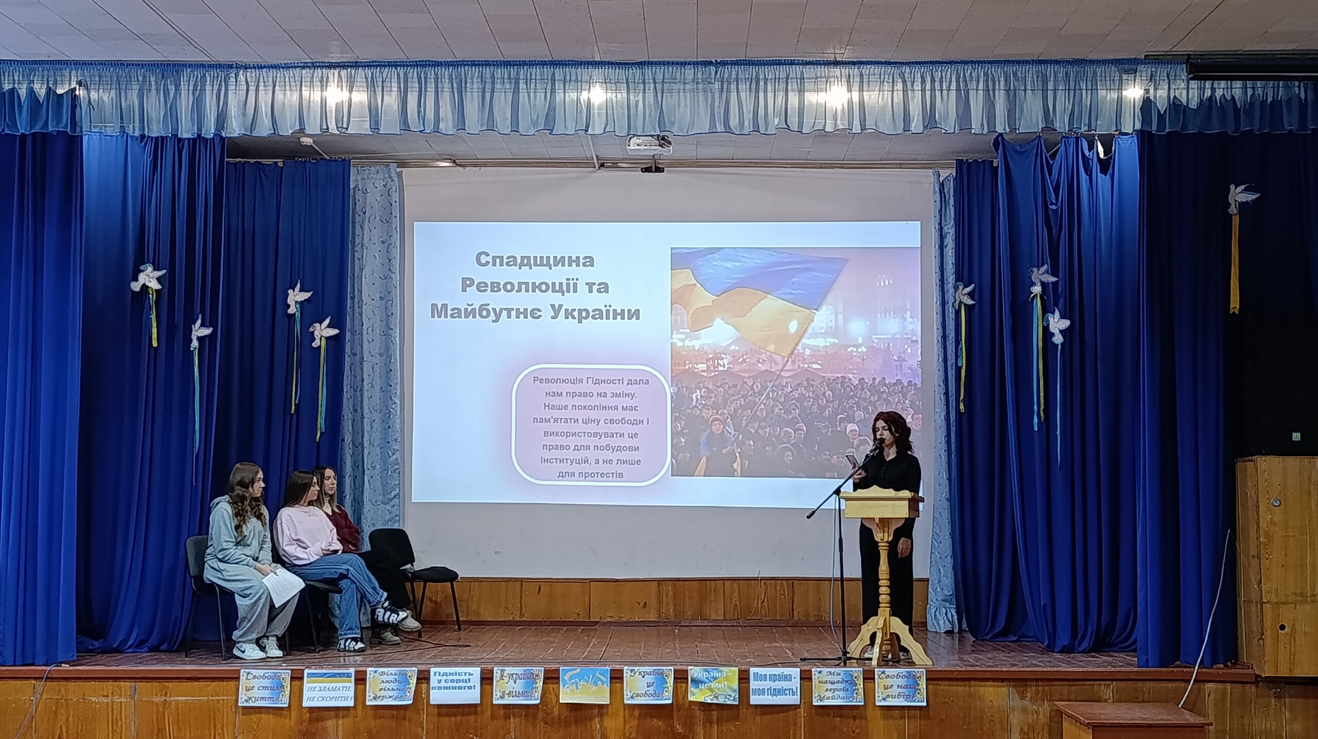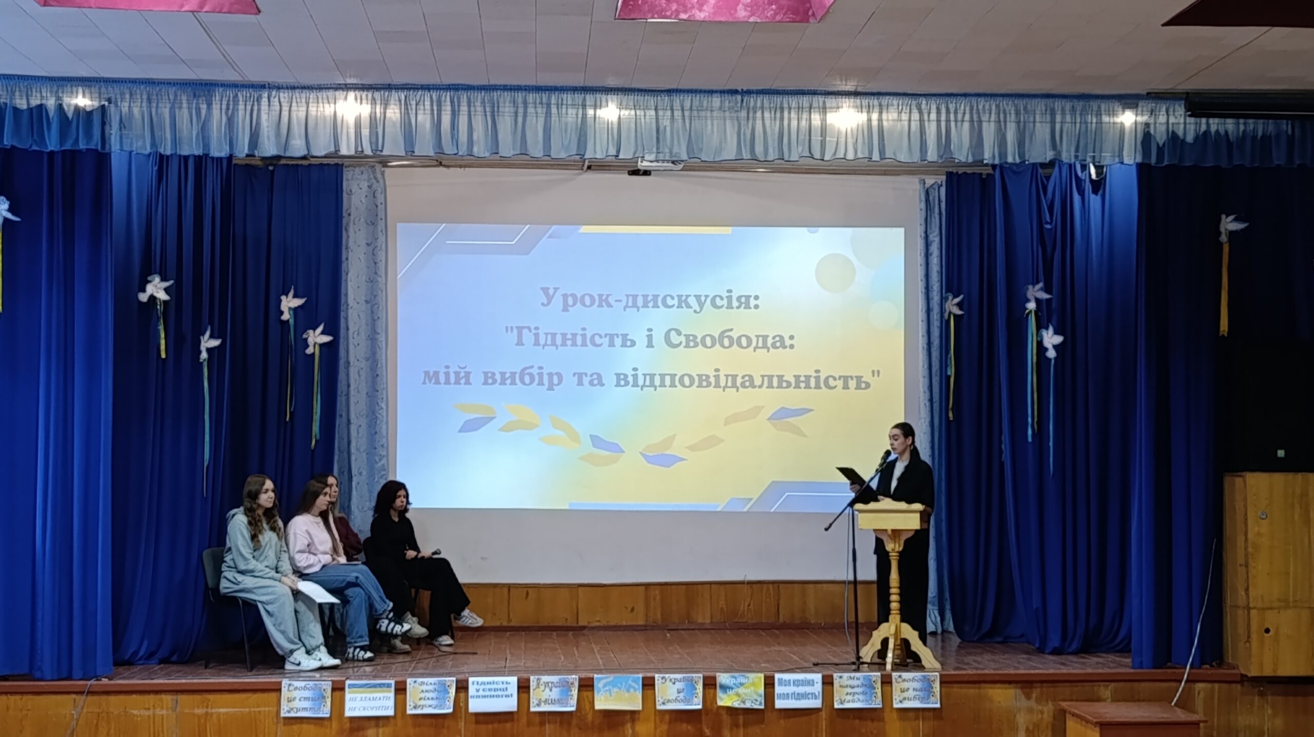 19 листопада 2025 року в актовій залі нашого ліцею відбувся захід, присвячений Дню Гідності та Свободи. Учні 10–11 класів взяли участь у форматі, що стимулює критичне мислення – дискусії на тему: “Гідність і Свобода: мій вибір та відповідальність”.