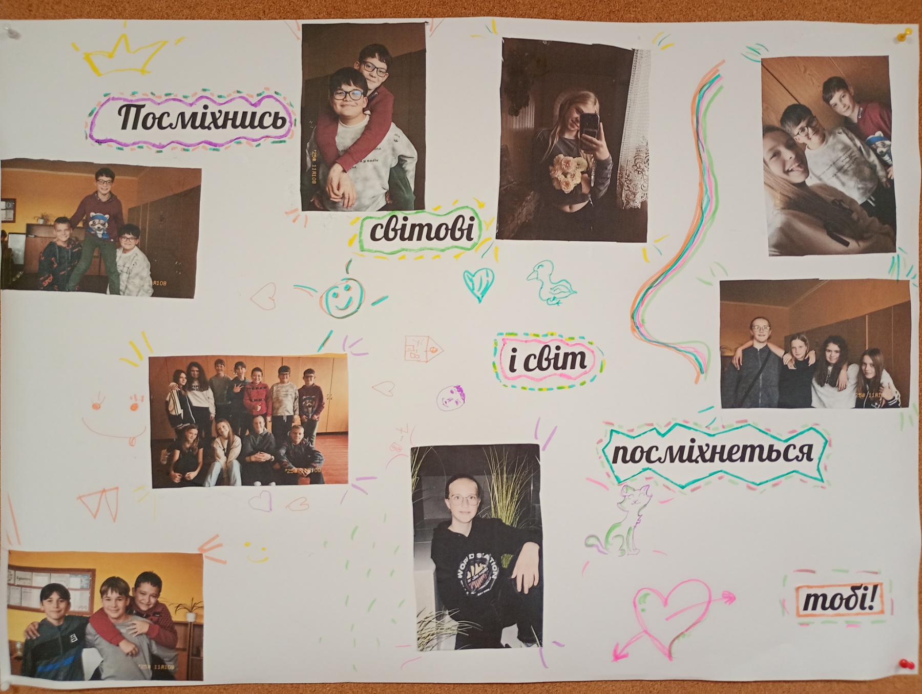 Коли наш фотоколаж розмістили на стенді класу, учні зупинялися, щоб подивитися, посміхнутися чи сфотографуватися поруч. У той момент я зрозуміла, що посмішка справді має силу — вона здатна зробити день кращим не лише для тебе, а й для інших. Справді : «Посмішка множиться, коли її ділиш!»