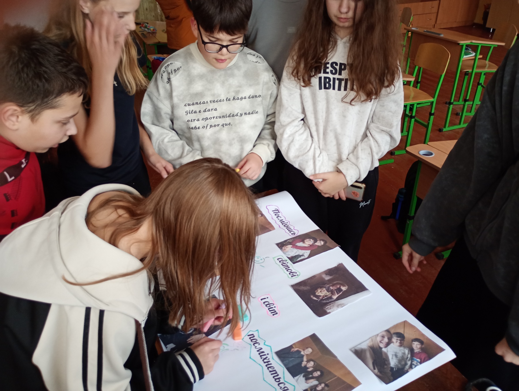 Коли ми працювали над колажем, у класі панувала особлива атмосфера радості й тепла. Ми жартували, допомагали одне одному, обирали найкращі фото. Навіть ті, хто зазвичай стриманий, почали більше посміхатися. Це було справді приємно — відчути, як простий спільний задум може згуртувати клас.