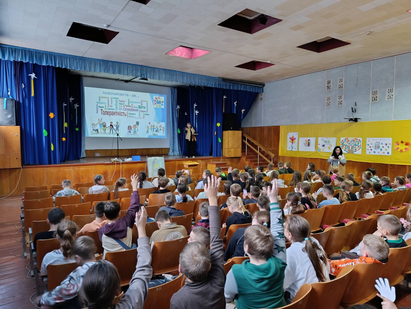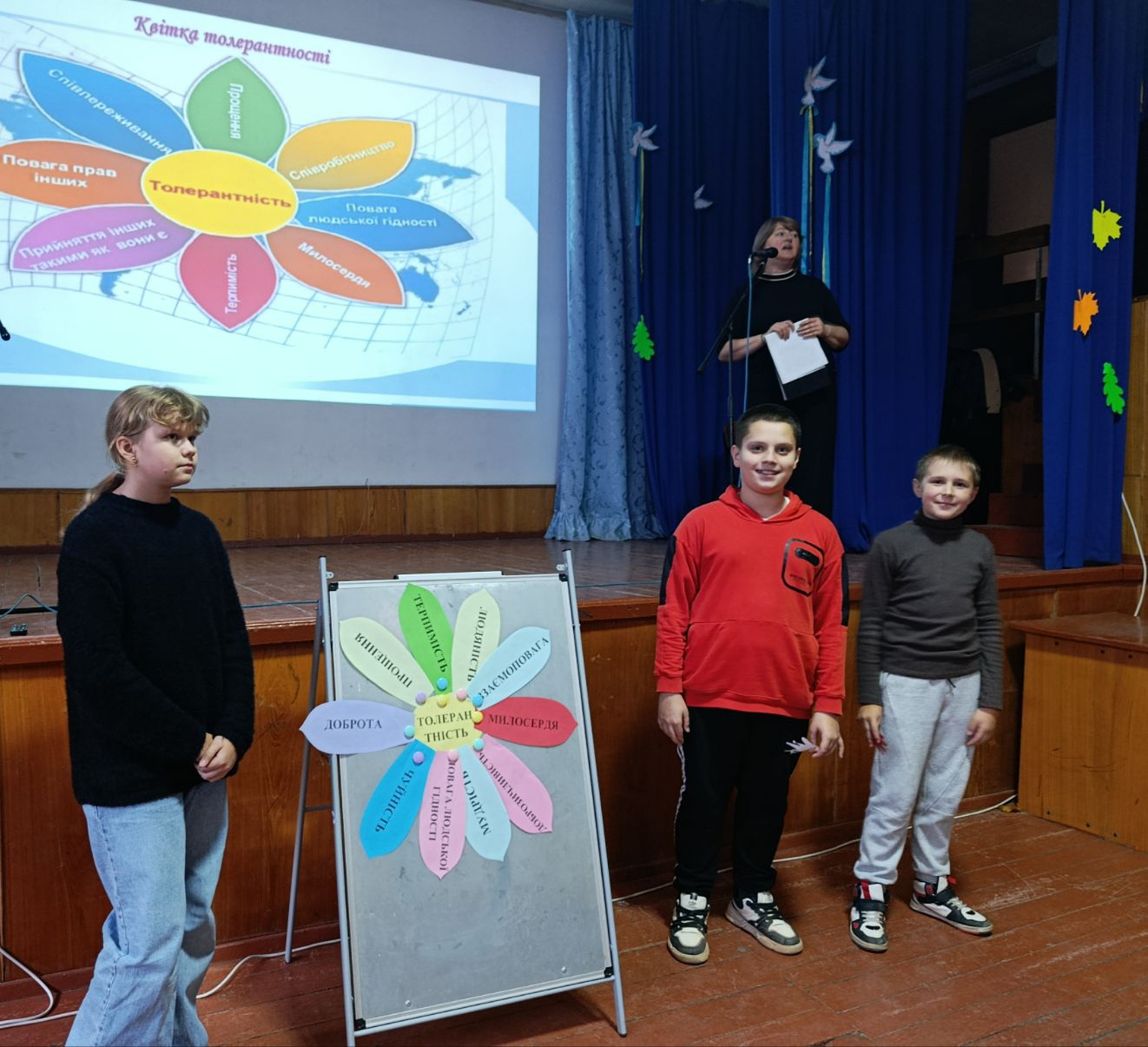11 листопада, до Міжнародного дня толерантності, у нашій школі відбувся виховний захід для учнів 5–6 класів на тему «Толерантність починається з мене», який пройшов у актовій залі та мав на меті формування поваги до інших, незалежно від їхніх відмінностей, а також виховання доброти, чуйності й уміння спілкуватися мирно.